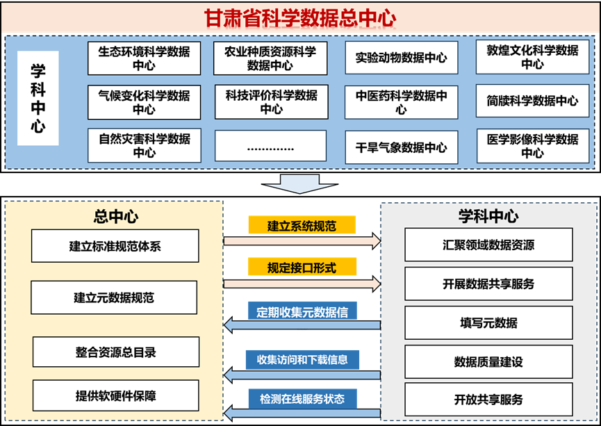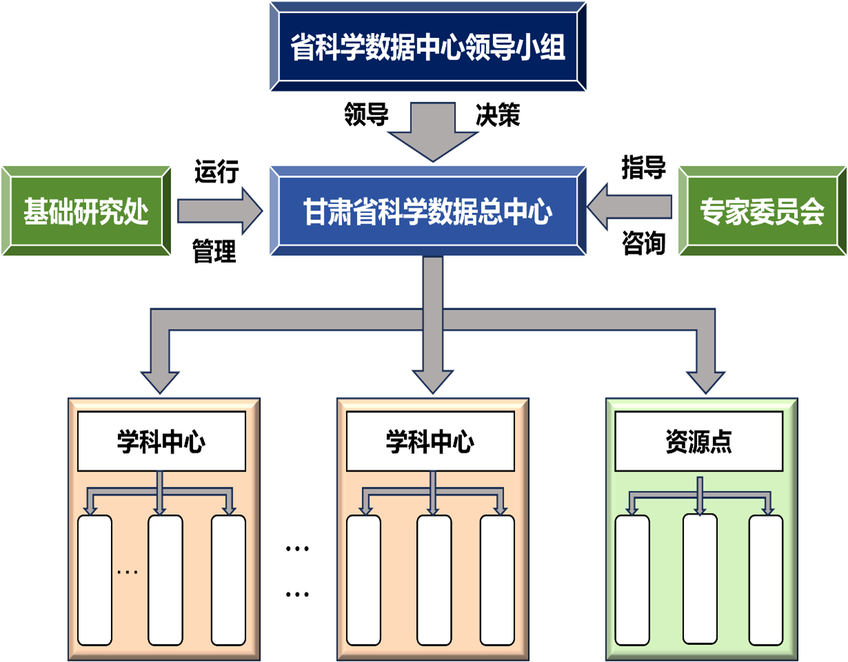 依据统筹布局、协同发展、分类管理、动态调整的原则。提出以“总中心-学科中心”两级数据中心体系,明确了总中心和学科中心的职责定位,以及遴选、认定、运行的要求,形成了甘肃省科学数据体系建设的指南。